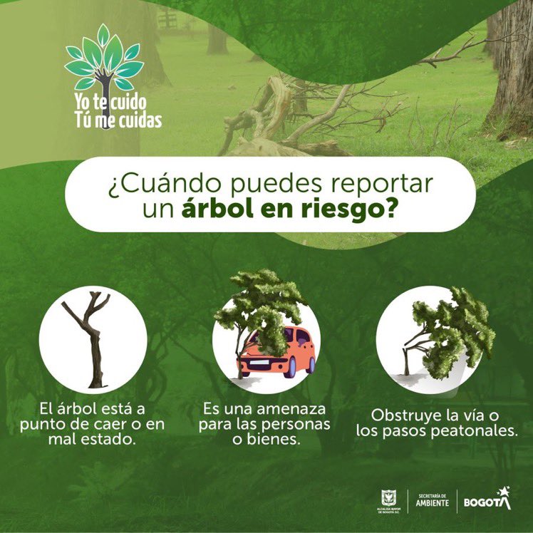 La Secretaría Distrital de Ambiente, debido a la temporada de lluvias, nos informa que hacer en caso de ver un árbol en riesgo o caido, sigamos las recomendaciones