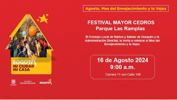 El Consejo Local de Sabios y Sabias de la Localidad de Usaquén y la Administración Distrital nos invitan a celebrar el Mes del Envejecimiento y la Vejez el próximo 16 de agosto a las 9:00 am en el Parque de Cedritos también conocido como «Parque de las Rampas» bienvenidos.