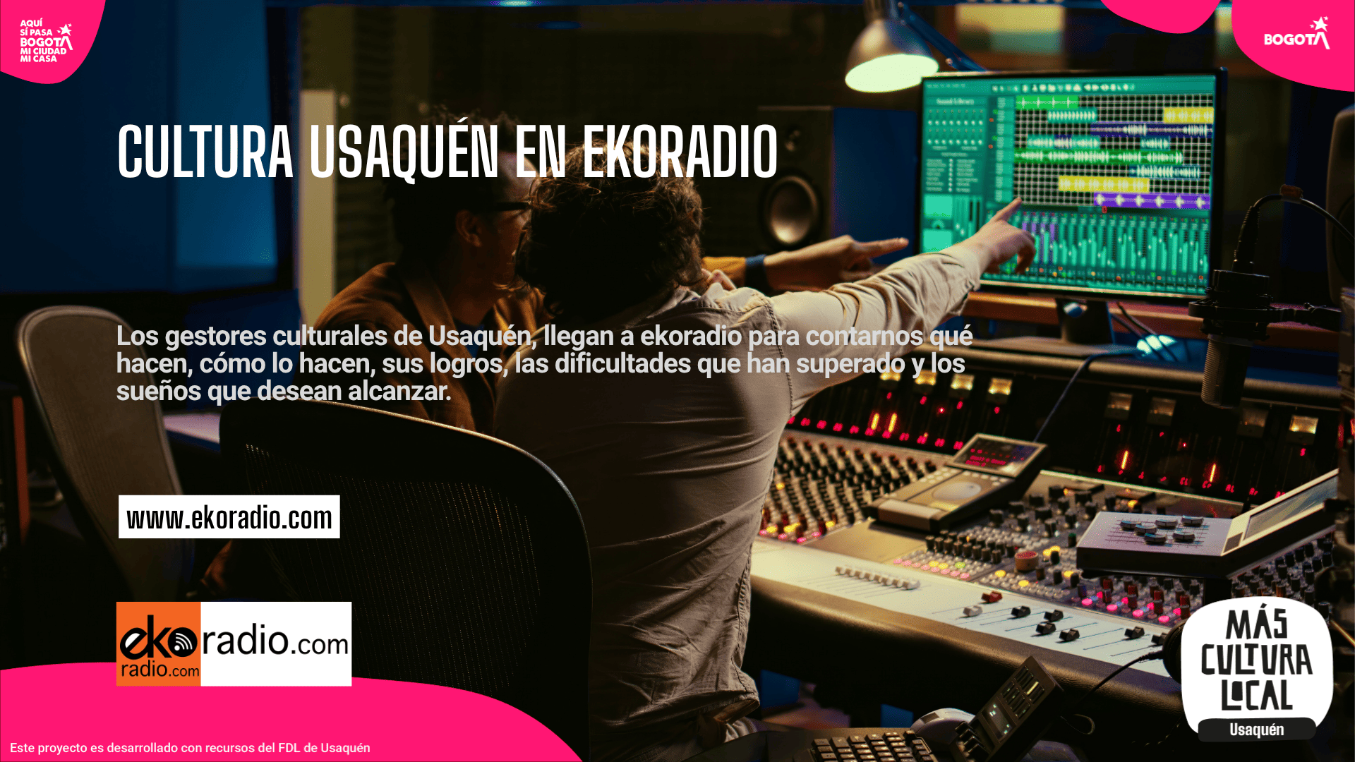A través de la serie de programas «Cultura Usaquén en ekoradio» te invitamos a conocer gestores de culturales de la localidad de Usaquén, conoce su trabajo, Qué hacen? Cómo lo hacen? Dónde lo hacen? Con quíen lo hacen? Quién los apoya? Qué logros han alcanzado? y lo más importante te gustaría partipar? a continuación dejamos la serie completa de programas.